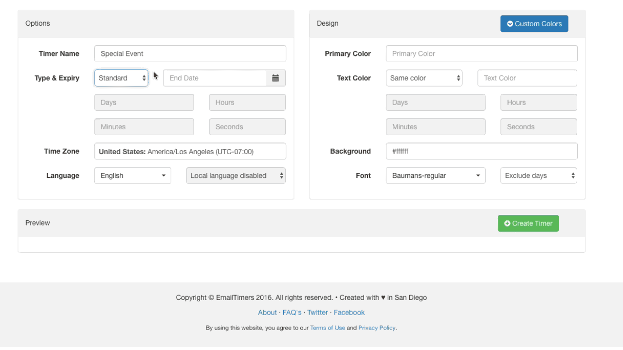 Create an unlimited number of timers in your account, each with it's own custom tracking and customizations.