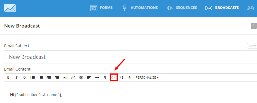 Step 1: Inside of your ConvertKit account, go to your email editor.